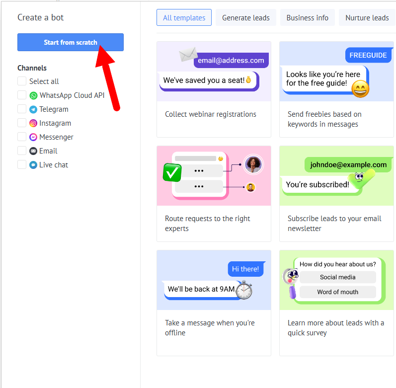 - To select the number from which to send the message, click on “channel” - In the window that opens, enter the message you will send to the customer at this stage of the funnel and save or set up a full E-chat pipeline